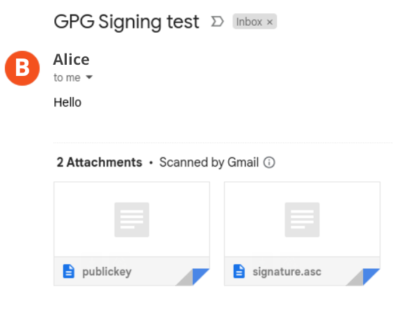 Upon reading gnupg manual, there are instructions to verify the imported public key by checking if the key’s fingerprint matches the key you are expecting from Alice (the sender). This does involve Alice letting Bob know about it’s key’s fingerprint somehow whether that be in email, text, voice call or in some paper delivered to Bob. Let’s pretend the fingerprint of Alice’s public key was transmitted to you through a trusted source is: